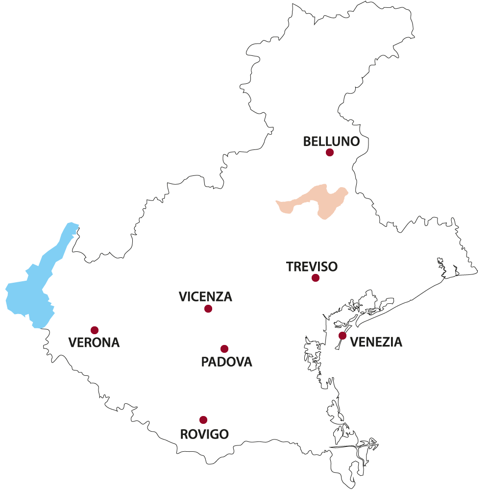 The production area extends into the hilly regions of the province of Treviso between the towns of Conegliano and Valdobbiadene. A chain of hills, running in the east-west direction, which climb all the way from the plains to the Alps, equally distant from the Dolomites – which protect them to the north – and from the Adriatic, that positively influences the climate and the nature of the landscape. The production area comprises the territory of 15 municipalities (Conegliano, Susegana, San Vendemiano, Colle Umberto, Vittorio Veneto, Cison di Valmarino, S. Pietro di Feletto, Refrontolo, Pieve di Soligo, Farra di Soligo, Miane, Vidor, Follina, Tarzo and Valdobbiadene) and extends over a vast area entirely cultivated with vineyards that cohabit with wooded zones on an agricultural land of about 20.000 hectares. Vines are cultivated only on the sunniest side of the hills, at an altitude of between 50 and 500 meters above sea level, while the north face is often covered with woods. There are currently more than 6,500 hectares of vineyards enrolled, that are worked by over 3,000 producers: 107 of these hectares belong to the sub-area of the Superiore di Cartizze which yields a yearly production of over a million bottles. The subzone of Cartizze lies between the steepest hills of San Pietro di Barbozza, Santo Stefano and Saccol, in the municipality of Valdobbiadene. It produces a genuine cru, born from the perfect combination of a sweet microclimate and very varied terrain, with moraines, sandstones and clays; that allow a rapid drainage from the rain and, at the same time, a constant water reserve so that the vines grow in a balanced way. In 2009 the Conegliano Valdobbiadene Prosecco obtained recognition as D.O.C.G. Thanks to this step, Conegliano Valdobbiadene, forty years after being recognised by the D.O.C., enters by its own right at the summit of the Italian quality wines ranking. The history of the denomination remains unchanged as well as the area of production but the producer’s opportunity to enhance it is broadened. The historical area of Conegliano Valdobbiadene has been granted the possibility to have the name of the originating municipality of the grapes written on its labels to highlight all those locations that throughout time have developed a particular expertise and merit. In this case the place name is preceded by the traditional term “Rive”, which refers to “the vineyards on the hill”.